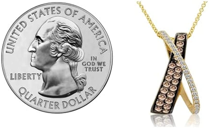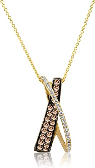 2/3 Carat Diamond Crossover Pendant Necklace for Women in 14k Yellow Gold (Fancy Brown/H-I, VS2-SI2, cttw) on 18 Inch Chain with Lobster Claw Clasp X Pendant by LeVian