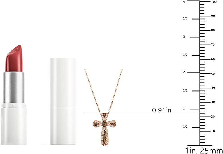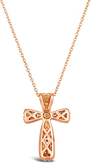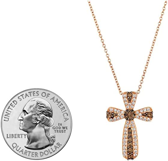 1/2 Carat Diamond Cross Pendant Necklace for Women in 14k Rose Gold (Brown/H-I, SI1-SI2 / VS2-SI1, cttw) on 18 Inch Chain with Lobster Claw Clasp by LeVian