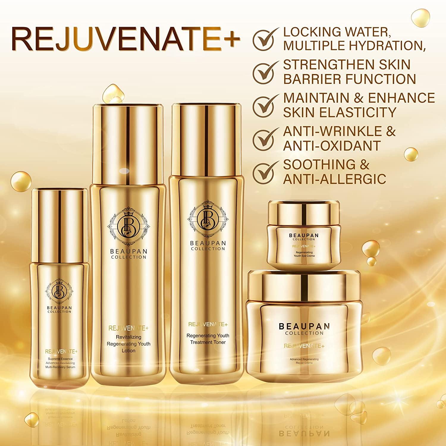 • ? LUXURIOUS PACKAGING: The BEAUPAN Rejuvenate+ Skin Care Gift Set includes six skin care essentials all packed into one luxe gift box. Our mission is to create products that are not only effective but also meaningful in their presentation and packaging. Perfect as Thank you gift, best friend gift and Birthday gift for women.