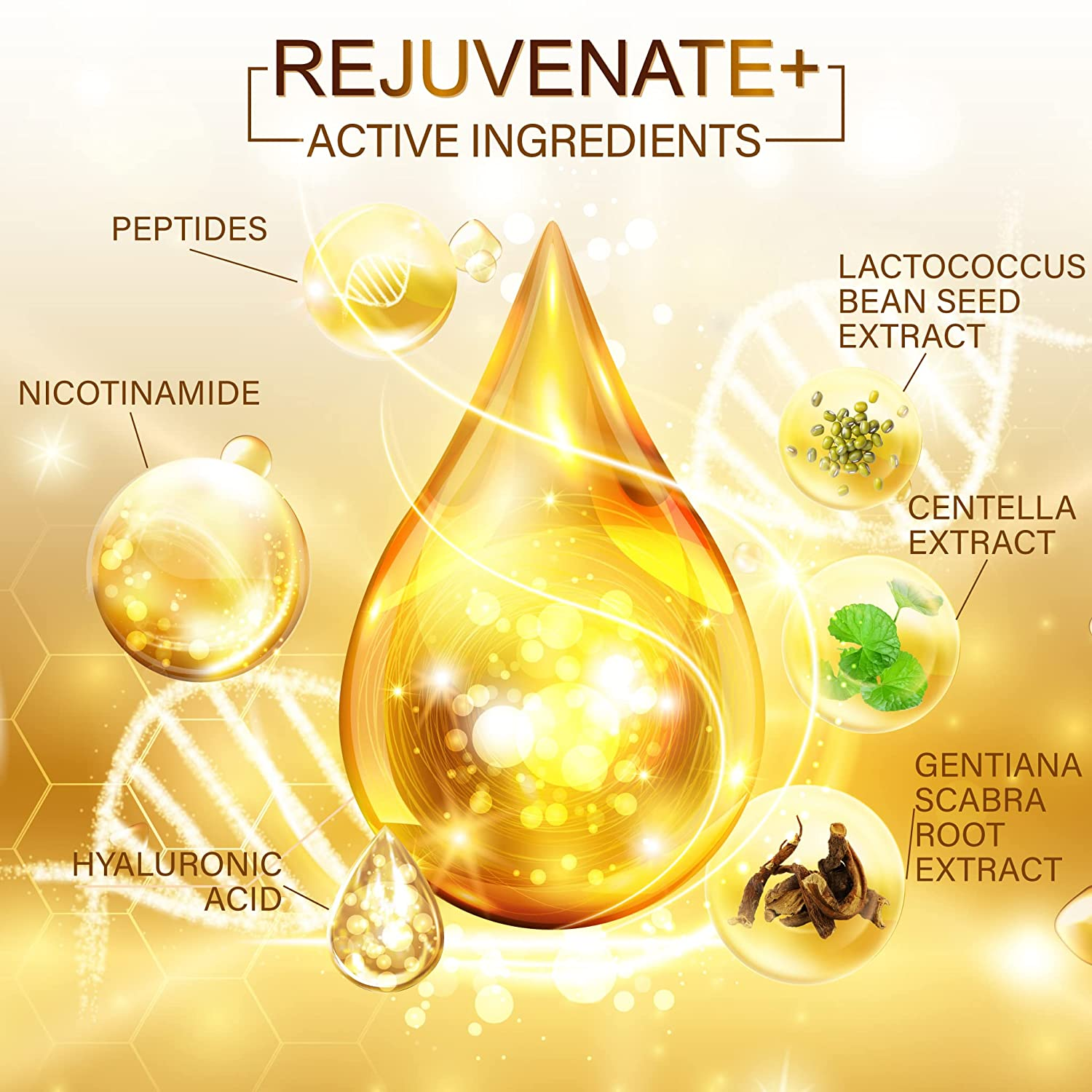 • ? ANTI-WRINKLE & ANTI-OXIDANT: Rejuvenate+ Skin Care Gift Set is designed to improve the appearance of aging skin. It has multitasking formula work that together to reduce wrinkles, restore elasticity and rejuvenate your skin such as peptides, hyaluronic acid and plant-based antioxidants like Centella extract, Gentiana scabra root extract & Lactococcus bean seed extract.