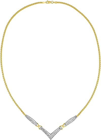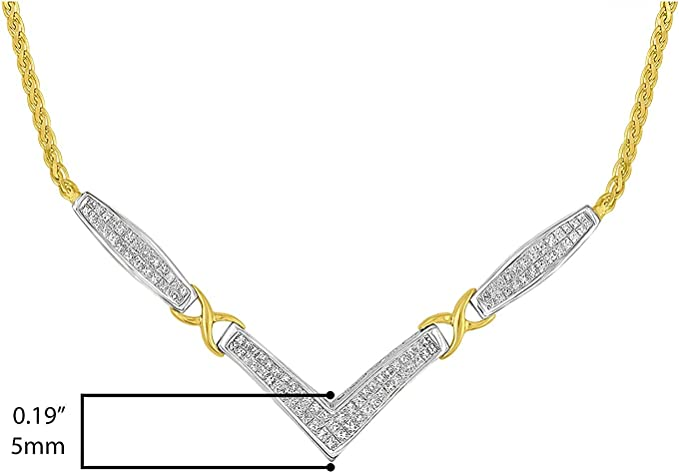 14K Yellow and White Gold 2.0 Cttw Princess Cut Diamond Flared and X-Station V Shaped 18” Franco Chain Statement Necklace (H-I Color, SI2-I1 Clarity)